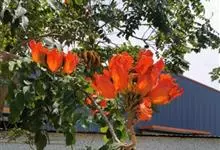 火焰树是紫葳科、火焰树属乔木,树皮平滑,灰褐色。奇数羽状复叶,对生,连叶柄长达45厘米;小叶13-17枚,叶片椭圆形至倒卵形,伞房状总状花序,顶生,密集;被褐色微柔毛,具有明显的皮孔;花冠一侧膨大,…全部>>