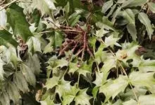 十大功劳 Fedde),小檗科十大功劳属常绿灌木植物。叶子较大且较多,呈椭圆形,绿色,表面光滑无毛,叶柄较长;花朵较小,呈多边形,黄色,花瓣对称分布,表面有绒毛;果实呈圆形,褐色,…全部>>