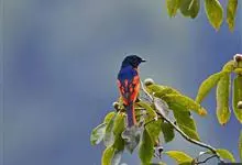 灰喉山椒鸟:共有8个亚种。体长18-22厘米。雄鸟头部和背亮黑色,腰、尾上覆羽和下体朱红色,翅黑色具一大一小的两道朱红色翼斑。中央尾羽黑色,外侧尾羽基部黑色,端部红色。…全部>>