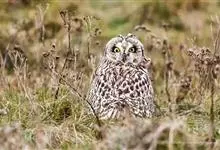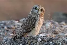 短耳鸮又名小耳木兔、田猫王、夜猫子等,是鸮形目鸱鸮科耳鸮属中小型猛禽动物。成鸟面盘显著,眼周黑色;眼先及内侧眉纹灰白色,面盘余部棕黄色杂以黑色细羽干纹;耳簇羽短小而几乎不外露,…全部>>
