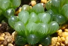 姬玉露 M.B.Bayer)是阿福花科,十二卷属的多年生草本。植株无茎,初为单生,后逐渐呈群生状;叶绿色,肉质,上半段呈透明或半透明状,称为“窗”,用于光合作用。总状花序,小花白色。原产南非,…全部>>