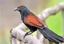 褐翅鸦鹃,是鹃形目鸦鹃科鸦鹃属的鸟类。褐翅鸦鹃的身体为黑色;头颈和胸带蓝紫色金属光泽并具黑亮的羽干纹,下胸至腹部泛金属绿光泽;两翼和肩部为棕栗色,外侧飞羽具暗色羽端,尾羽闪铜绿色光泽;虹膜赤红色,…全部>>