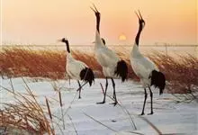丹顶鹤:是鹤科、鹤属的一种大型涉禽,体长120-160厘米。颈、脚较长,通体大多白色,头顶鲜红色,喉和颈黑色,耳至头枕白色,脚黑色,站立时颈、尾部飞羽和脚黑色,头顶红色,…全部>>