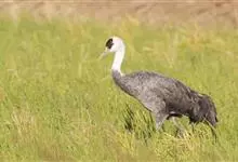 白枕鹤体形与丹顶鹤相似,略小于丹顶鹤,而大于白头鹤。上体为石板灰色。尾羽为暗灰色,末端具有宽阔的黑色横斑。取食时主要用喙啄食,或用喙先拨开表层土壤,然后啄食埋藏在下面的种子和根茎,边走边啄食。…全部>>