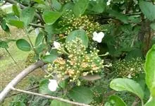 蝴蝶戏珠花 Miq.)是荚蒾科荚蒾属植物。落叶灌木,高达3米;当年小枝浅黄褐色。叶较狭,宽卵形或矩圆状卵形,有时椭圆状倒卵形。花序直径4-10厘米,外围有4-6朵白色、木型的不孕花。果实先红色后变黑色,…全部>>