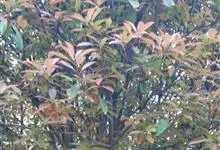 红叶石楠 是蔷薇科,石楠属杂交种,为常绿小乔木或灌木,乔木高可达5米、灌木高可达2米。叶片革质,长圆形至倒卵状、披针形,叶端渐尖,叶基楔形,叶缘有带腺的锯齿,花多而密,复伞房花序,花白色,梨果黄红色,…全部>>