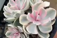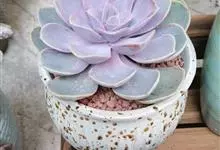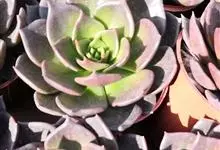 紫珍珠是景天科石莲花属的多年生肉质草本植物。植株中小型;叶片肉质,匙形,呈莲座状紧密排列;叶片粉紫色,叶缘呈粉白色,光照充足时颜色亮丽,不足时叶色会呈现深绿色或灰绿色,叶面光滑,被轻微白粉,…全部>>
