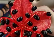 假苹婆是锦葵科苹婆属乔木植物。幼枝被毛;叶椭圆形或披针形,先端骤尖,基部钝或近圆无毛;圆锥花序腋生,花淡红色;蓇葖果鲜红色,长卵圆形或长椭圆形;种子卵圆形黑褐色;花期4-6月。…全部>>