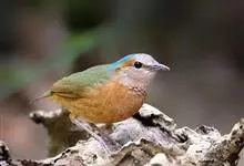 栗头八色鸫又叫锅巴雀,体长为24-26厘米,体重100-135克,是雀形目八色鸫科的鸟类。体型圆胖,尾短,腿长,常在森林底层或低植被中找食无脊椎动物。叫声简单哀婉。…全部>>