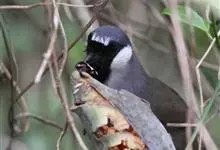 黑喉噪鹛是噪鹛属鸟类。体长24-29厘米,体重75-90克。雄鸟前额、眼先、眼周和眼后纹以及颊、须和喉黑色;黑色前额和蓝灰色头顶之间有道白色细斑;颈侧具椭圆形白斑,…全部>>