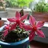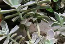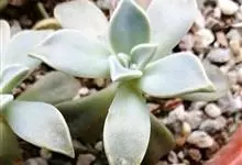 胧月 E.Walther)是景天科,风车草属多肉植物,常绿蔓生亚灌木,叶肥厚无柄,灰蓝色,阳光充足时呈粉红色,叶片枝顶簇生成莲座状,乳白色,花冠5裂,上有紫红色斑点,雄蕊两轮排列,花药鲜红色,…全部>>