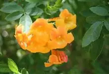 硬骨凌霄 Spach)是紫葳科硬骨凌霄属的多年生常绿木质藤本植物。茎多分枝;枝带绿褐色;叶对生,奇数羽状复叶,边缘有锯齿;总状或圆锥花序顶生,花冠漏斗状,橙红色或橙黄色;蒴果长线形,略扁;花期几乎全年,…全部>>