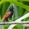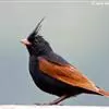 凤头鹀:属小型鸣禽,体重21-31克,体长134-175毫米。以头顶的细长羽冠为特征,雄鸟全身几乎均为黑色具蓝色光泽,两翅和尾以及尾上覆羽栗红色。雌鸟具短的褐色羽冠,上体暗橄榄褐色,…全部>>