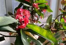 铁海棠为大戟科大戟属蔓生灌木植物;茎多分枝,具纵棱,呈旋转状;叶互生,通常集中于嫩枝上;每个花序基部边缘具微小的红色尖头;苞叶先端圆且具小尖头,无柄,上面鲜红色,下面淡红色;苞片丝状;子房光滑无毛,…全部>>