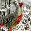 血雉雉科血雉属鸟类,别名血鸡、松花鸡,血雉的雄鸟大覆羽、尾下覆羽、尾上覆羽、脚、头侧、腊膜为红色,故称血雉。其别名甚多,各地皆异。在甘肃,因其胸侧和翅上覆羽沾绿,被称为“绿鸡”;因其羽毛形似柳叶,…全部>>