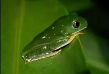 树蛙是树蛙科两栖动物的统称。树蛙体中等或大,一般雄蛙吻端斜尖,雌蛙吻端高钝;舌后端缺刻深,梨骨齿发达,鼓膜明显,指间有蹼或蹼发达,趾间近全满蹼,外侧跖较发达;鼻骨小、蝶筛骨显露,额顶宽或宽短,…全部>>