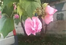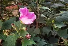 木芙蓉,锦葵科木槿属落叶灌木或小乔木。小枝上有细绒毛;叶片为卵状心形,托叶为披针形,常早落;花单生,花萼为钟形,花冠初为白色或淡红色,后逐渐变为深红色;果实为扁球形,有淡黄色的毛附着。花期8到10月。…全部>>