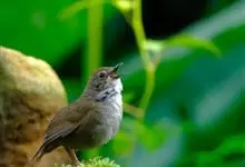 斑胸短翅莺:小型鸟类,体长11-13厘米。上体暗赭褐色,眉纹灰白;下体白色,下喉至上胸具灰褐点斑,很显著;腹部中央灰白色。虹膜褐色;嘴黑色;脚淡灰角色,爪角褐色。…全部>>