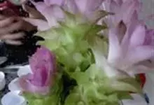 莪术姜科姜黄属多年生草本植物。主根茎陀螺状,淡黄色至白色;叶圆状长圆形至长圆状披针形,中部常有紫斑;花亭自根茎先叶发出,穗状花序阔圆形;苞片卵形,下部绿白色至绿色,上部紫红色;花冠白色或粉红色,…全部>>