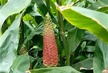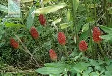 红球姜 Roscoe ex Sm.)是姜科姜属的多年生草木植物。植株高达2米,根茎块状,内部淡黄色,叶披针形或长圆状披针形,无毛或下面被疏长柔毛,无柄或具短柄,苞片覆瓦状排列,初淡绿色,后红色。…全部>>