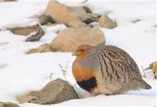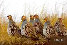 斑翅山鹑,俗称沙半鸡、沙斑鸡,体长250-310毫米,是体形略小的灰褐色鹑类。雄鸟的脸、喉中部及腹部桔黄色,腹中部有一倒“U“字形黑色斑块。与灰山鹑的区别在于胸为黑色而非栗色,喉部桔黄色延至腹部,…全部>>