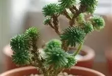 小松绿是景天科景天属植物,多肉植物,植株低矮,多分枝,株型近似球状,新枝浅绿色,以后逐渐转为灰白色,肉质叶近似针状。枝条下部的老叶容易干枯,贴在枝干上,形成类似松树皮般的龟裂,数月才脱落,…全部>>