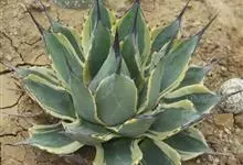 金边龙舌兰是天门冬科龙舌兰属多年生常绿草本植物。叶丛生边缘有黄白色条带镶边,有紫褐色刺状锯齿;圆锥花序黄绿色,花药丁字形着生;蒴果长椭圆形;种子扁平黑色。10年开花,结实后即枯死。…全部>>