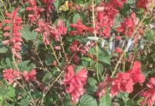一串红,又称爆仗红、象牙红,为唇形科鼠尾草属植物。花序修长,色红鲜艳,花期又长,适应性强,为中国城市和园林中最普遍栽培的草本花卉。原产巴西、南美洲。喜温暖和阳光充足环境。不耐寒,耐半阴,忌霜雪和高温,…全部>>