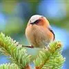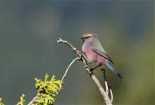 凤头雀莺:小型鸟类。体长9-10厘米,雄鸟呈毛茸茸的紫色和绛紫色,顶冠淡紫灰色,额及凤头白色,尾全蓝。雌鸟喉及上胸白,至臀部渐变成淡紫色,耳羽灰,…全部>>