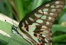 青带凤蝶Graphium sarpedon ,又名青凤蝶,是最普遍的中型凤蝶,飞行速度很快。青带凤蝶的翅膀中央有许多浅蓝色的斑点,很整齐地排列成一条直线。这些斑点由上而下逐渐变大,就像一条青色的带子。全部>>