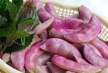 扁豆 Sweet)是豆科扁豆属多年生缠绕藤本植物,又名鹊豆、沿篱豆、藤豆等。全株几无毛,茎长可达6米。羽状复叶具3小叶;托叶基着,叶片披针形;小托叶线形,小叶宽三角状卵形,宽与长相等,…全部>>