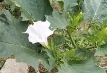 曼陀罗,茄科曼陀罗属一年生大型草本植物,全株光滑。有臭气;叶呈广卯形,边缘具不规则波状浅齿裂;花单生于枝杖间或叶腋,直立,有短梗;花萼是筒状裂片三角形,颜色为白色或淡紫色;果实为蒴果卵状,…全部>>