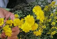 野菊花为菊科多年生草本植物,野菊花头状花序的外形与菊花相似,呈类球形,直径0.3~1cm,棕黄色。总苞由4~5层苞片组成。舌状花一轮,黄色,皱缩卷曲;管状花多数,深黄色。体轻。性苦、味辛,微寒。野生…全部>>