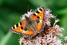 荨麻蛱蝶:共有10个亚种。翅展4.5-5厘米。翅面黄褐或红褐色,斑纹黑或黑褐色,前翅外缘齿状,翅端呈镰形,外缘有一黑褐色宽带,顶角内侧有一白斑,中室内外及其下方各有1黑色斑纹。…全部>>