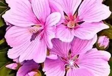 锦葵:二年生或多年生直立草本,高50-90厘米,分枝多,疏被粗毛。叶圆心形或肾形,具5-7圆齿状钝裂片,两面均无毛或仅脉上疏被短糙伏毛。花3-11朵簇生,小苞片3,长圆形疏被柔毛;花紫红色或白色,…全部>>