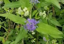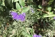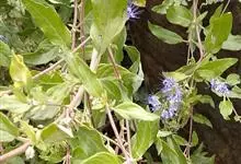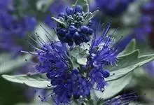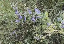 蒙古莸:为唇形科莸属落叶小灌木。常自基部即分枝,嫩枝紫褐色,圆柱形,有毛,老枝毛渐脱落。叶片厚纸质,线状披针形或线状长圆形,背面密生灰白色绒毛。聚伞花序腋生,无苞片和小苞片,花萼钟状,花冠蓝紫色。…全部>>