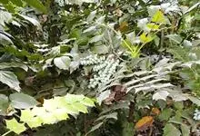 十大功劳 Fedde),小檗科十大功劳属常绿灌木植物。叶子较大且较多,呈椭圆形,绿色,表面光滑无毛,叶柄较长;花朵较小,呈多边形,黄色,花瓣对称分布,表面有绒毛;果实呈圆形,褐色,…全部>>