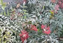 南天竹,小檗科南天竹属常绿小灌木植物,茎干较高,表面光滑无毛,红色;叶较小,叶片薄,呈椭圆形且为深绿色,无毛;花朵较小,白色带有芳香,呈四角形;果柄短且果实呈球形,橙红色;种子扁圆形。花期3-6月,…全部>>