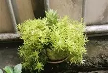 垂盆草别名石头菜、狗牙瓣、豆瓣菜等,为景天科景天属的多年生草本植物。不育枝及花茎细,匍匐而节上生根,直到花序之下;3叶轮生,叶倒披针形至长圆形,先端近急尖,基部急狭,有距;聚伞花序,花无梗,…全部>>
