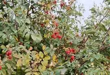 金樱子为常绿攀援灌木,高可达5米。小枝粗壮,散生扁弯皮刺,无毛,幼时被腺毛,老时逐渐脱落减少。小叶革质;小叶片边缘有锐锯齿;小叶柄和叶轴有皮刺和腺毛;托叶离生或基部与叶柄合生,边缘有细齿,齿尖有腺体。…全部>>