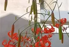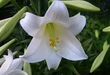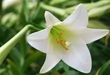麝香百合:在中国台湾亦称铁炮百合。鳞茎球形或近球形,高2.5-5厘米;鳞片白色。茎高45-90厘米,绿色,基部为淡红色。叶散生,披针形或矩圆状披针形,两面无毛。花单生或2-3朵;花喇叭形,白色,筒外…全部>>