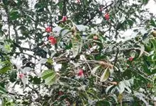 滇山茶:灌木至小乔木,有时高达15米,嫩枝无毛。叶阔椭圆形,上面干后深绿色,发亮,下面深褐色,无毛,侧脉6-7对,边缘有细锯齿。花顶生,红色,直径10厘米,无柄;苞片及萼片10-11片,花瓣红色,…全部>>