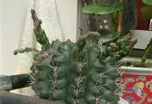 英冠玉是仙人掌科南国玉属的多年生肉质植物。茎幼时球形,后随年龄增长渐变为圆筒形,高可达5米,易群生,蓝绿色,茎顶密生绒毛;刺座密集,毛状黄白色,中刺针状褐色;花大,花冠漏斗状,…全部>>