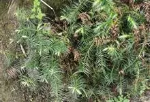 杉木 Hook.)是柏科杉木属高大乔木。株高大;树皮灰褐色裂成长条片,内皮淡红色;大枝平展,小枝对生或轮生,幼枝绿色,光滑无毛,冬芽近球形,具小形叶状芽鳞;叶披针形或窄;雄球花圆锥状,绿色;球果卵圆形,…全部>>