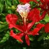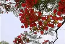 凤凰木 Raf.) ,别名火树、红花楹、凤凰花、火凤凰、金凤花、红楹,是豆科凤凰木属高大落叶乔木,树皮灰褐色,粗糙。二回偶数羽状复叶互生,矩圆形,两面均被柔毛。伞房式总状花序,花大,花瓣5枚,圆形,…全部>>