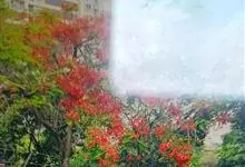 凤凰木 Raf.) ,别名火树、红花楹、凤凰花、火凤凰、金凤花、红楹,是豆科凤凰木属高大落叶乔木,树皮灰褐色,粗糙。二回偶数羽状复叶互生,矩圆形,两面均被柔毛。伞房式总状花序,花大,花瓣5枚,圆形,…全部>>
