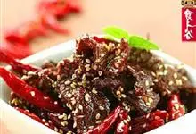 主料:牛肉500克 调料:花生油100克,大葱20克,姜15克,料酒10克,白砂糖25克,芝麻5克,盐10克,辣椒10克,花椒5克,味精2克,辣椒油25克全部>>