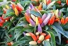 五色椒又名朝天椒,五彩辣椒,为辣椒 变种,味涩。属茄科多年生半木质性植物,常作一年生栽培;江苏沭阳一带有不少花农种植,其株高30厘米—60厘米,分枝多、茎直立,单叶互生;花白色,开花期5月初—7月…全部>>