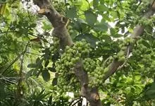 大果榕是桑科榕属的小乔木,株高可达10米;幼枝被柔毛;叶互生,宽卵状心形或近圆形;雄花无梗、匙形、花丝长,雌花生于雌株榕果内,子房白色;榕果簇生于树干基部或老茎短枝上、扁球形或陀螺形,…全部>>