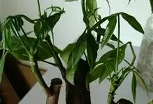 瓜栗 Walp. ),俗称发财树,木棉科小乔木,高4-5米,树冠较松散,幼枝栗褐色,无毛。小叶具短柄或近无柄。花单生枝顶叶腋;花梗粗壮,被黄色星状茸毛,脱落;萼杯状,近革质;花瓣淡黄绿色,狭披针形…全部>>